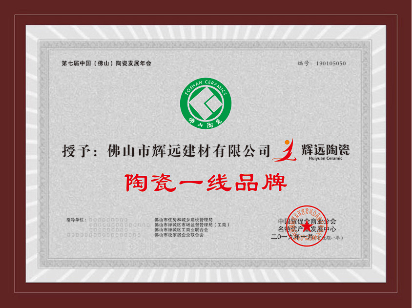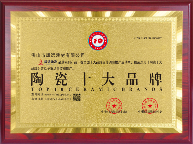 輝遠陶瓷品牌是一家具有跨時代性和優良市場口碑的大型的建陶生產企業。公司坐落于擁有“南國陶都”美譽的、全國最大建筑陶瓷生產基地——廣東省佛山市。生產基地現擁有八組380米寬體窯生產線及拋光線,日產地磚25萬平方米,占地1000余畝,總投資8億,年產值20億。